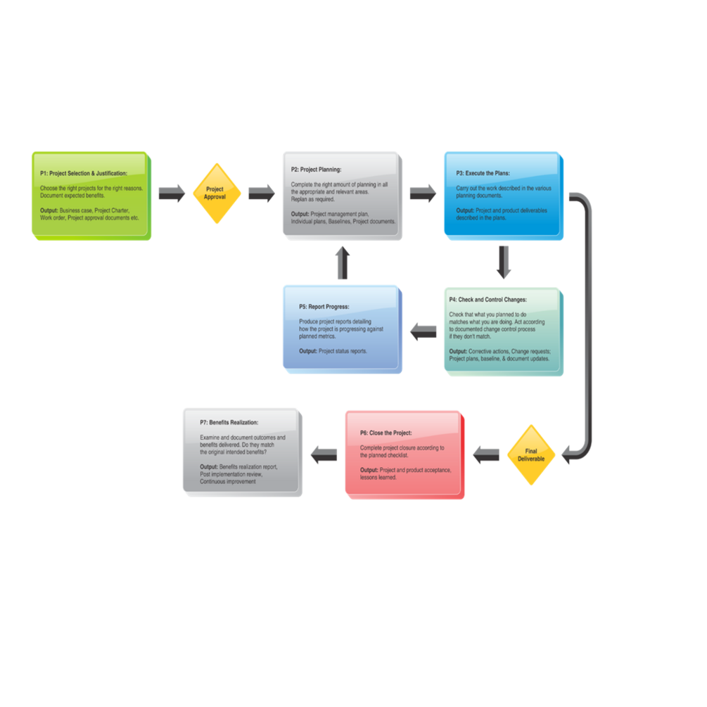 4. The end result is a graphical display of your very own project management methodology. Take this information and use it to development your project management methodology user manual by describing what you have built.